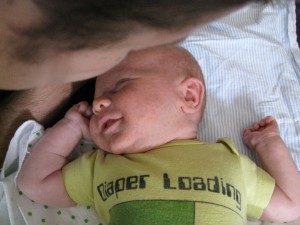 Then we were up again at 1, and this time it was really bad. Elliot cried and cried such that he had a hard time latching on and when he would latch on he wouldn’t drink but for a couple of minutes before he would choke or start crying again. Logan came down and put Elliot on the dryer, which soothed him until he got off the dryer. I suggested we give him a bottle while on the dryer so that he could finally get some food in him and go to sleep. Logan replied with, “Why don’t we give him a booby? That doesn’t have any preparation time!” So, I nursed Elliot while he was on the dryer and Logan rubbed my back while I nursed since it was a rather awkward position. Elliot went to sleep and he and I spent the rest of the night in the recliner.